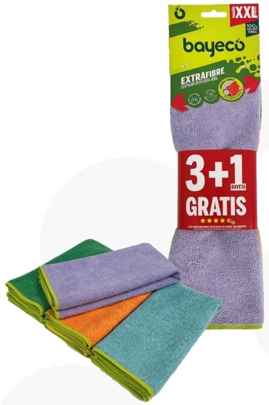 Con las Bayeco Bayetas Microfibra XXL 3 + 1, no solo obtienes un producto de alta calidad, también recibes una oferta increíble con la unidad adicional gratuita. Esto te permite experimentar una limpieza eficaz sin preocuparte por el desgaste inmediato de las bayetas.