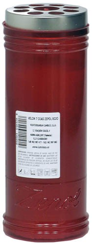 Zepol Velón 7 Días con Capuchón – Vela Blanca con Recubrimiento Rojo y Larga Duración